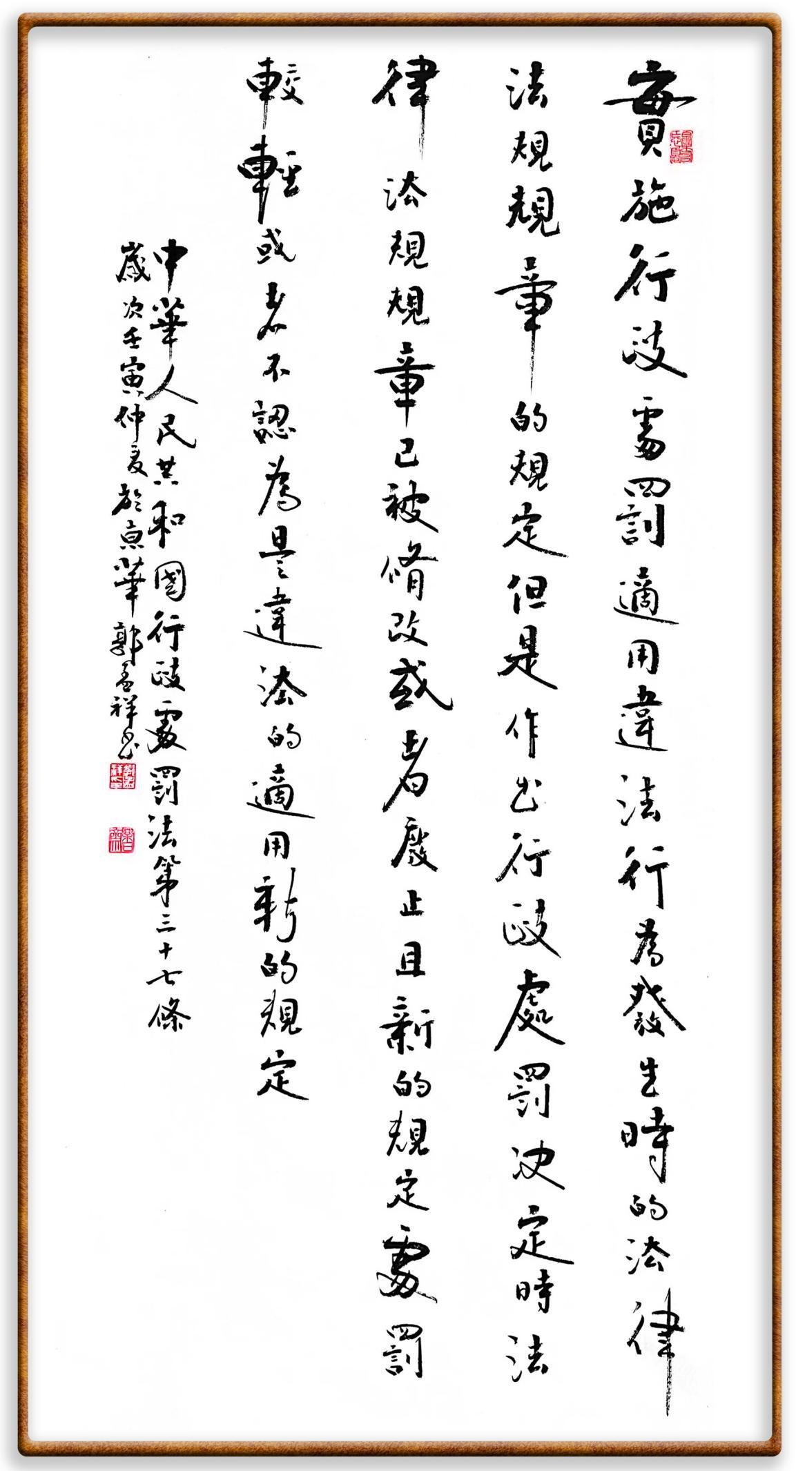 繼《中華人民共和國民法典》《中華人民共和國土地管理法》《中華人民共和國土地管理法實施條例》《中華人民共和國法律援助法》之后,法治日報社聯(lián)合北京市司法局、北京市書法家協(xié)會,將筆端對準《中華人民共和國憲法》和《中華人民共和國行政處罰法》。