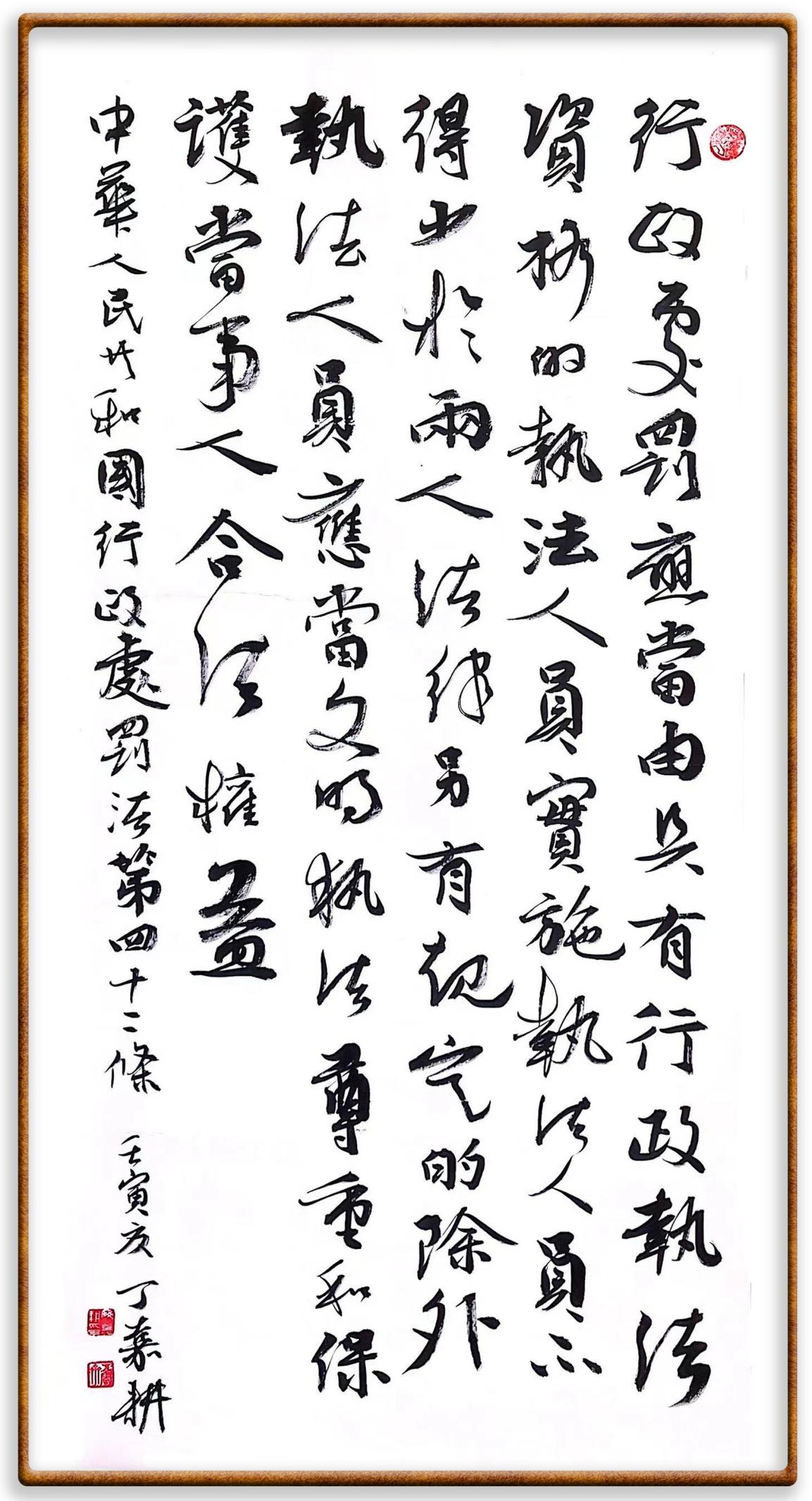 繼《中華人民共和國民法典》《中華人民共和國土地管理法》《中華人民共和國土地管理法實施條例》《中華人民共和國法律援助法》之后,法治日報社聯(lián)合北京市司法局、北京市書法家協(xié)會,將筆端對準(zhǔn)《中華人民共和國憲法》和《中華人民共和國行政處罰法》。