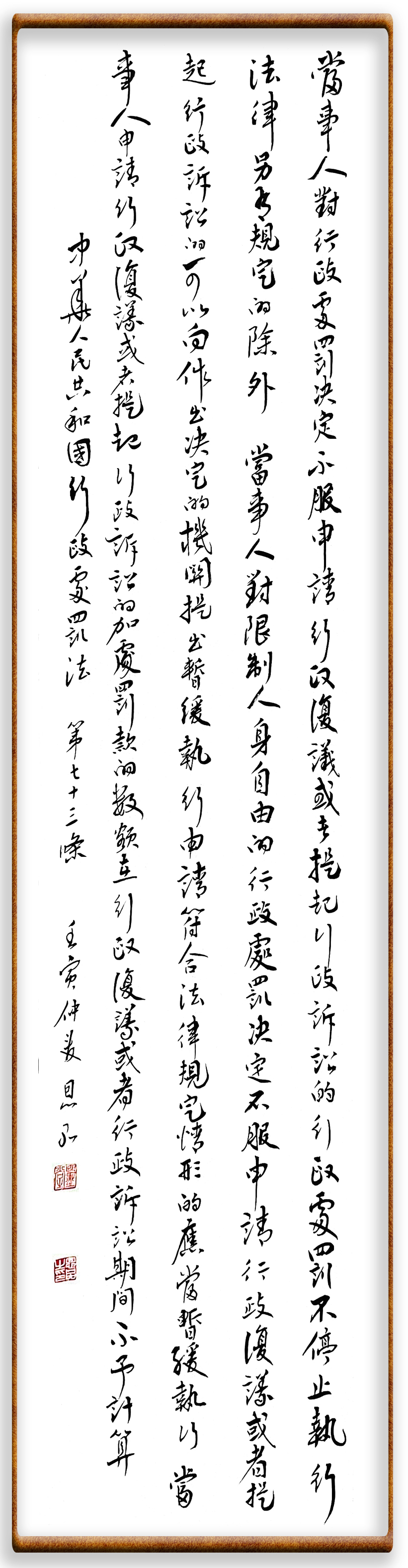 繼《中華人民共和國民法典》《中華人民共和國土地管理法》《中華人民共和國土地管理法實施條例》《中華人民共和國法律援助法》之后,法治日報社聯(lián)合北京市司法局、北京書法家協(xié)會,將筆端對準(zhǔn)《中華人民共和國憲法》和《中華人民共和國行政處罰法》。
