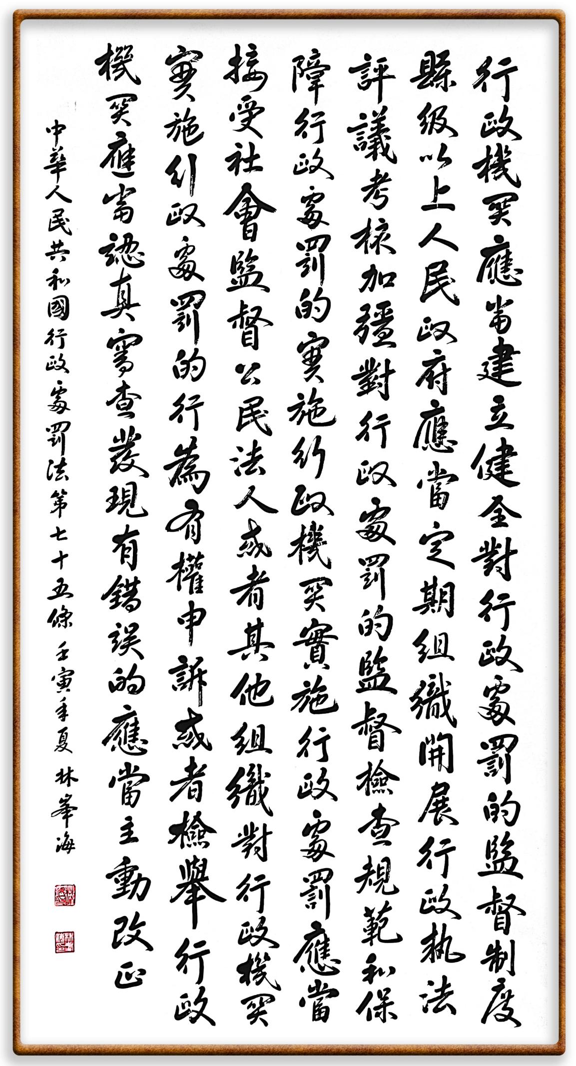 繼《中華人民共和國民法典》《中華人民共和國土地管理法》《中華人民共和國土地管理法實施條例》《中華人民共和國法律援助法》之后,法治日報社聯(lián)合北京市司法局、北京書法家協(xié)會,將筆端對準《中華人民共和國憲法》和《中華人民共和國行政處罰法》。