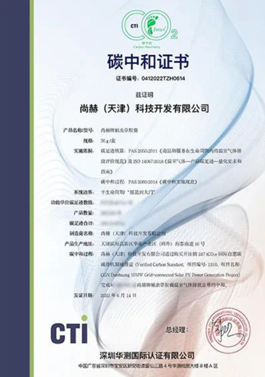 尚赫牌蛹蟲草膠囊獲得“碳中和”認(rèn)證證書