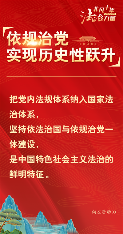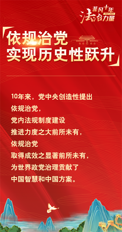 法治網(wǎng)精心策劃制作十期海報,帶您一起領略非凡十年的法治力量!今天為您奉上第九期“依規(guī)治黨實現(xiàn)歷史性躍升”。