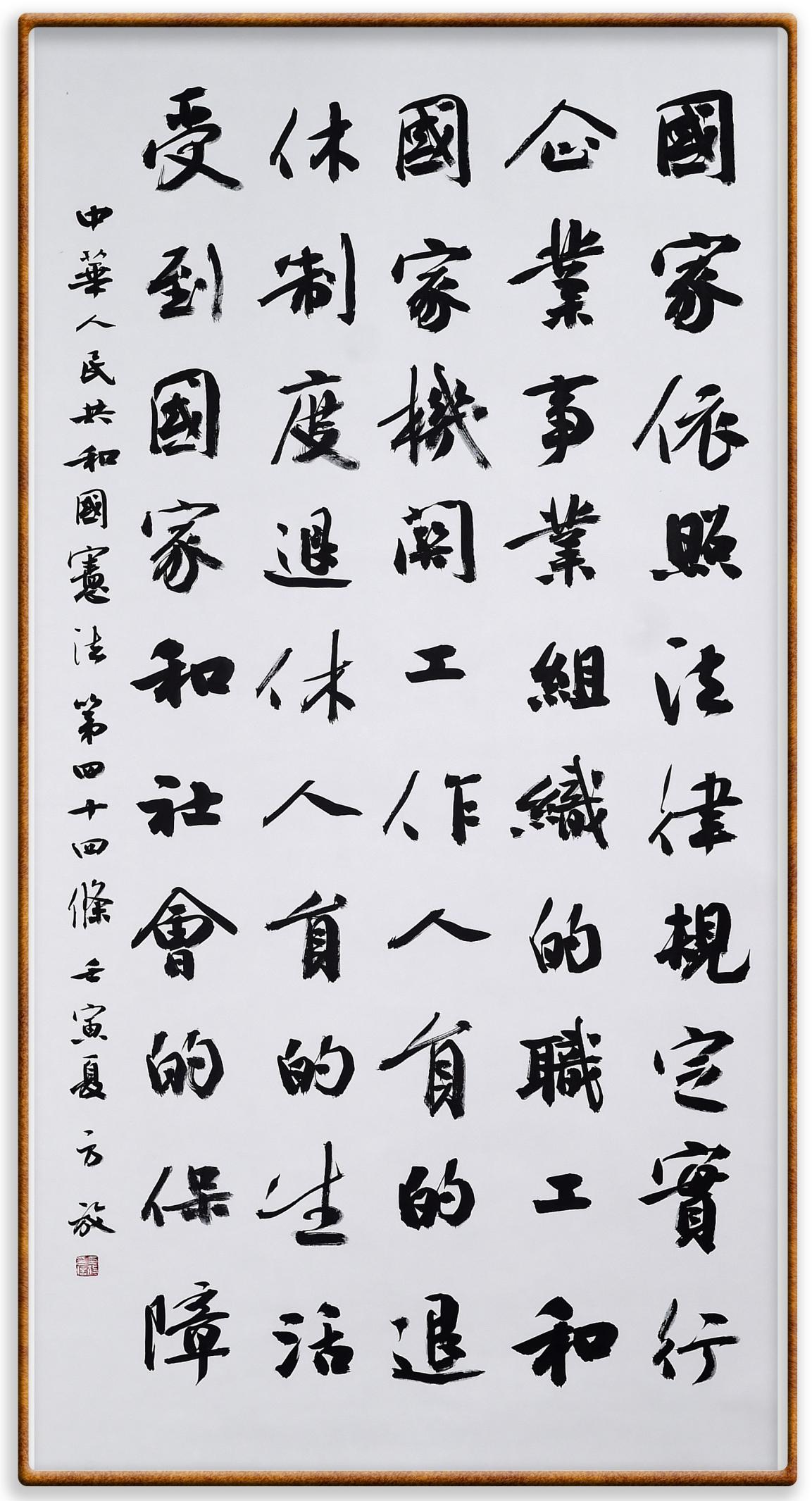繼《中華人民共和國民法典》《中華人民共和國土地管理法》《中華人民共和國土地管理法實(shí)施條例》《中華人民共和國法律援助法》之后,法治日?qǐng)?bào)社聯(lián)合北京市司法局、北京書法家協(xié)會(huì),將筆端對(duì)準(zhǔn)《中華人民共和國憲法》和《中華人民共和國行政處罰法》。