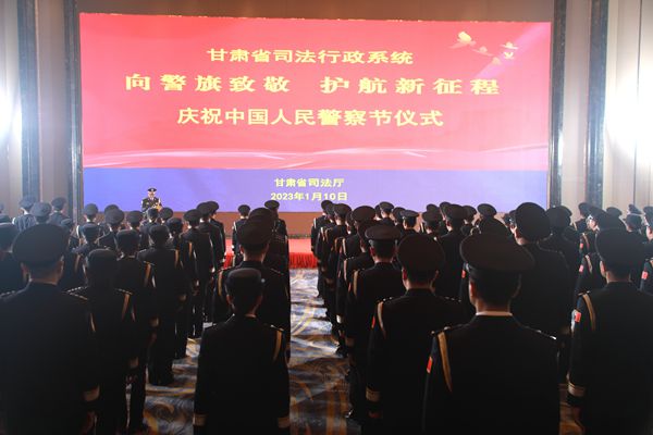 1月10日,甘肅省司法行政系統(tǒng)在蘭州舉行“向警旗致敬 護航新征程”第三個“中國人民警察節(jié)慶”祝儀式,省司法廳機關(guān)相關(guān)局處室、省監(jiān)獄管理局、省戒毒管理局和基層監(jiān)所民警代表參加了慶祝儀式。